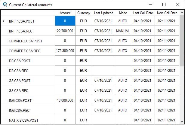 View current collateral amounts posted or received for each counterparty, update mode (manually entered, automatically “estimated” from MtMs) as well surrounding collateral anniversary dates.
